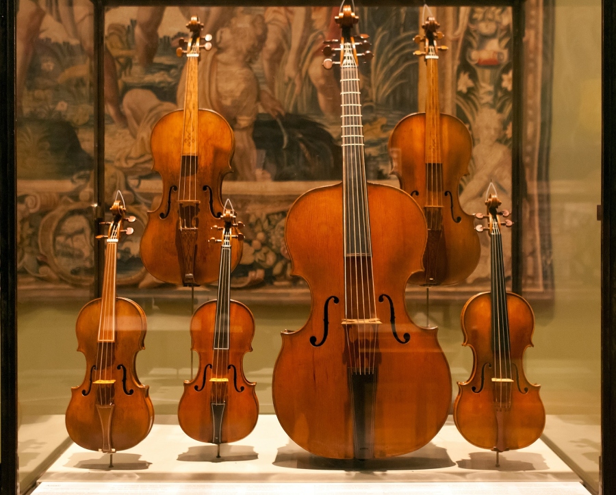 Die Violenfamilie tauchte um 1500 in Italien auf. Die Kuppel des Santuario di Saronno in Norditalien zeigt eine Freske „Angeli Musicanti“ von 1534-36, auf denen die typischen Charakteristika der Viola- und Violinenfamilie, wie vier Saiten und die f-förmigen Schalllöcher zu sehen sind.