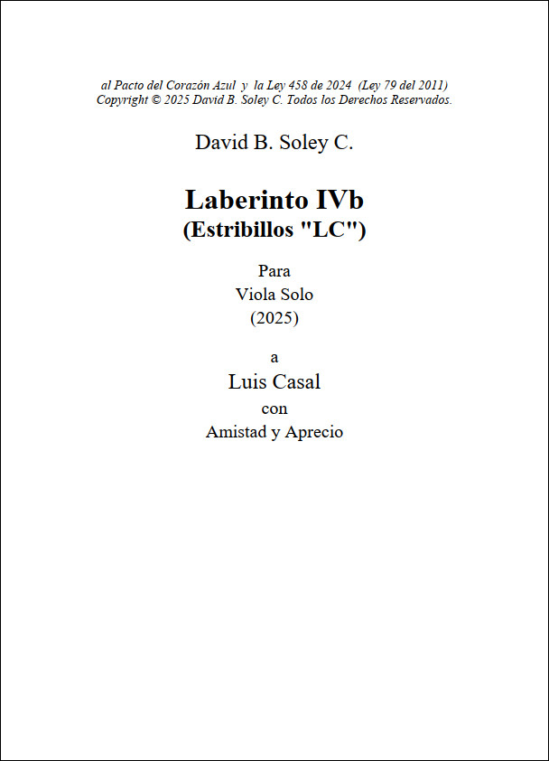 Geschrieben für den panamaischen Bratschisten/Geiger Luis Casal https://music4viola.info/werk-info/2/Soley%20D./laberinto-ivb-estribillos-lc-fuer-bratsche-solo